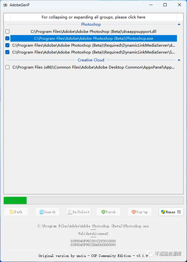 12.等待搜索完毕,只勾选Photoshop(Beta),其他的都不要勾选,然后点击“Patch”