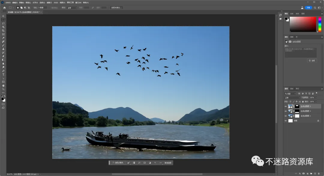 框选天空输入:A flock of birds(一群飞鸟)