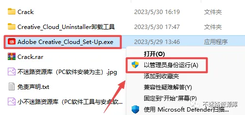 2.打开刚刚解压的文件夹,首先安装创意云,鼠标右键点击“1.Adobe Creative_Cloud_Set-Up.exe”选择“以管理员身份运行”.