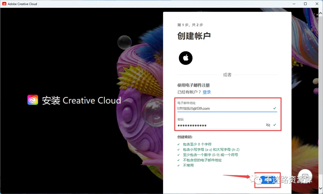 3.如果有Adobe账号直接登录。没有则点击“创建账户”