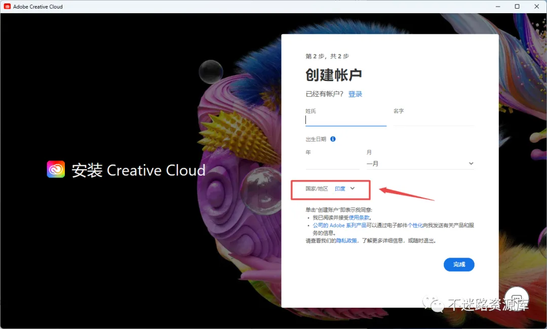 5.需要注意“国家/地区”选择“印度”,填写完成后点击“完成”