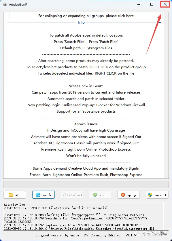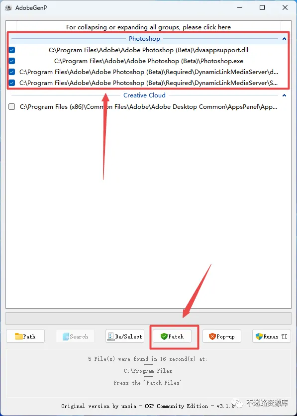 12.等待搜索完毕,只勾选Photoshop(Beta),其他的都不要勾选,然后点击“Patch”