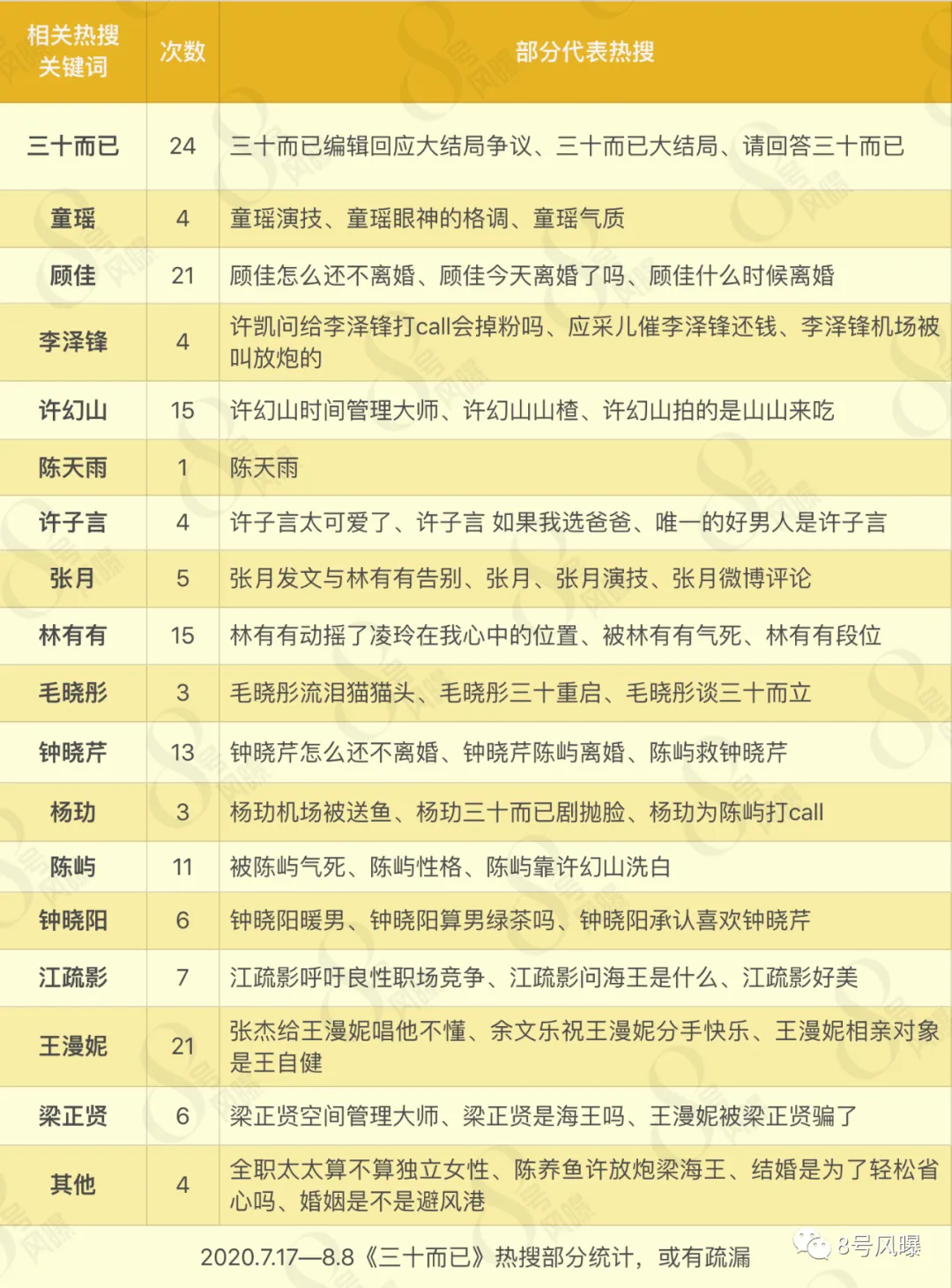 7月17日开播至今,共22天,不完全统计《三十而已》热搜160多次,平均下来每天有7个之多。