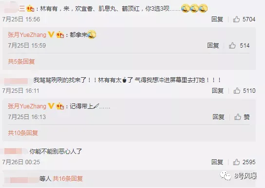 更有气急败坏的观众,涌到演员张月的微博底下“咒骂”↓
