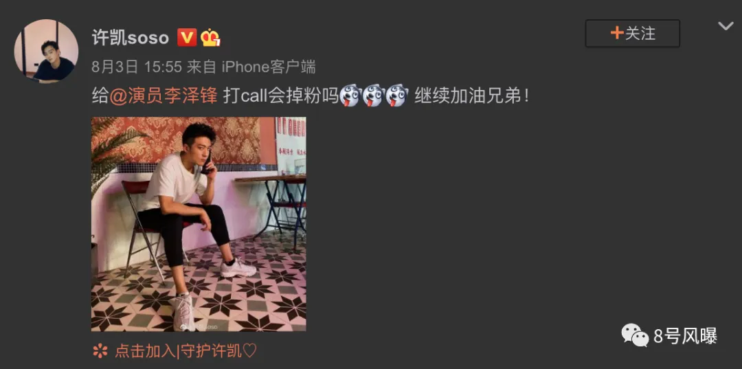 比如许凯便懵懵发问:给李泽锋打call会掉粉吗?↓