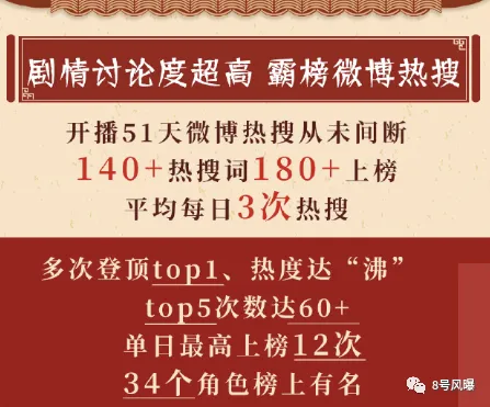 《知否知否,应是绿肥红瘦》播出51天,热搜180+,最高时可以一天上热搜12次↓