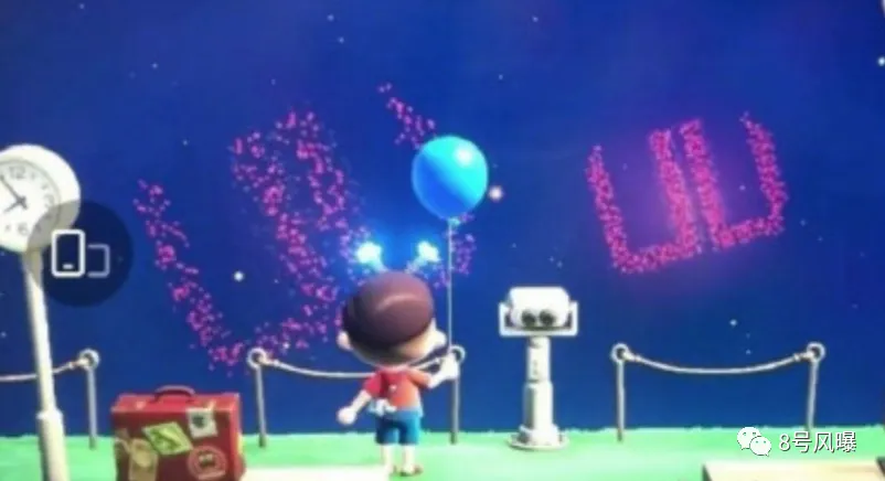 还有今年大火的游戏《动物之森》举办烟花会时,岛上最热门的图案是玩家自行设计的蓝色“UU”↓