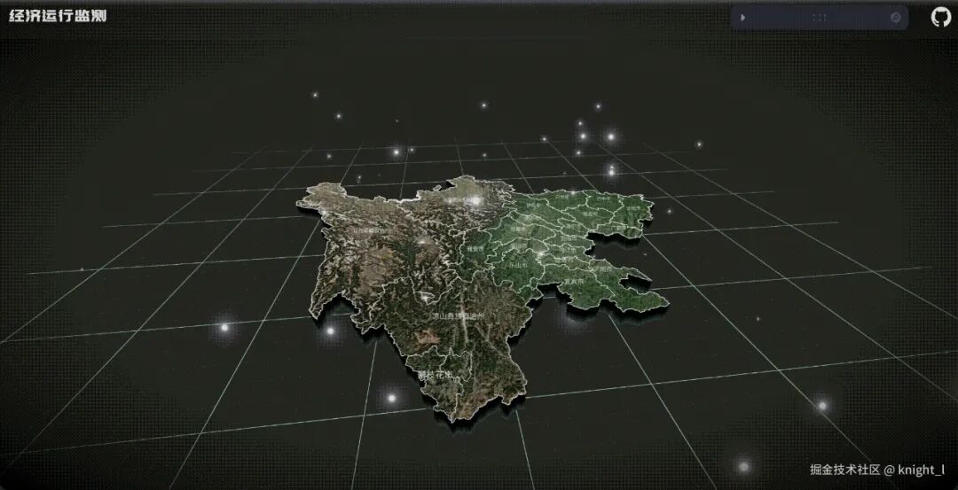 : 基于 Three.js 的 3D 地图渲染,轮廓飞线动画效果,侧边扫光视觉效果 - 省级地图展示