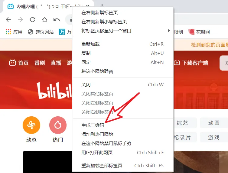 我自己网址生成二维码的方式,都是用的百分浏览器,在打开的网址上,直接右键—生成二维码,即可直接发送二维码给小伙伴。
