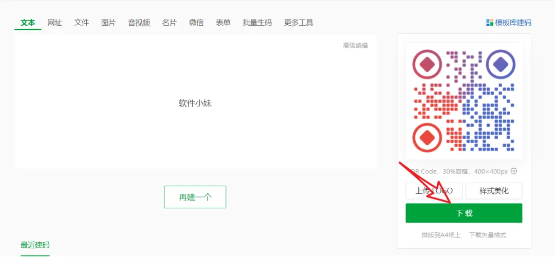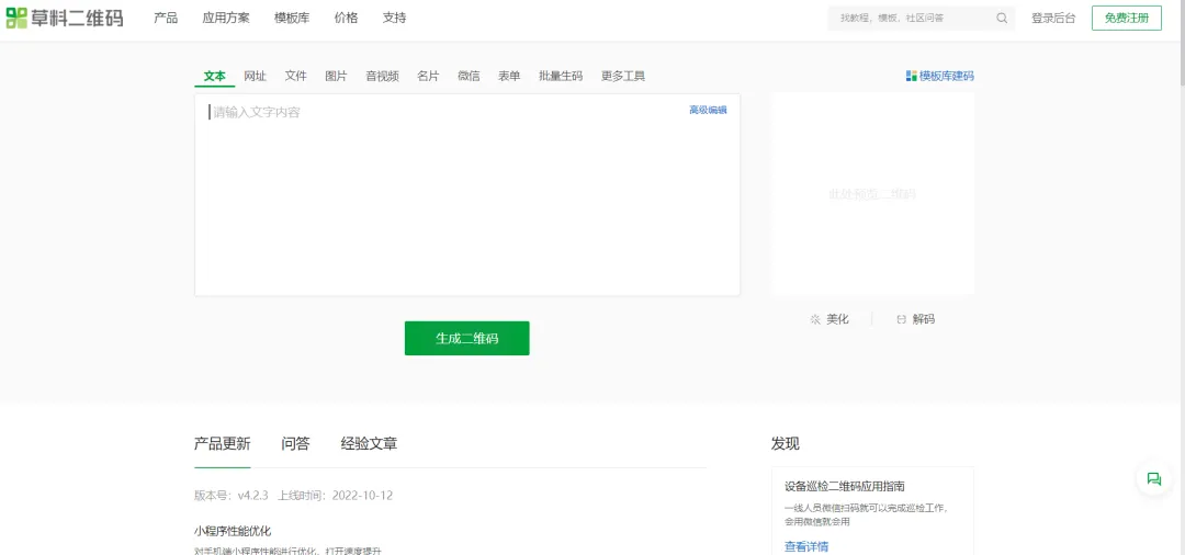 网站可以文本、网址、文件、图片、微信、批量生成等等,能生成的方式种类非常多。