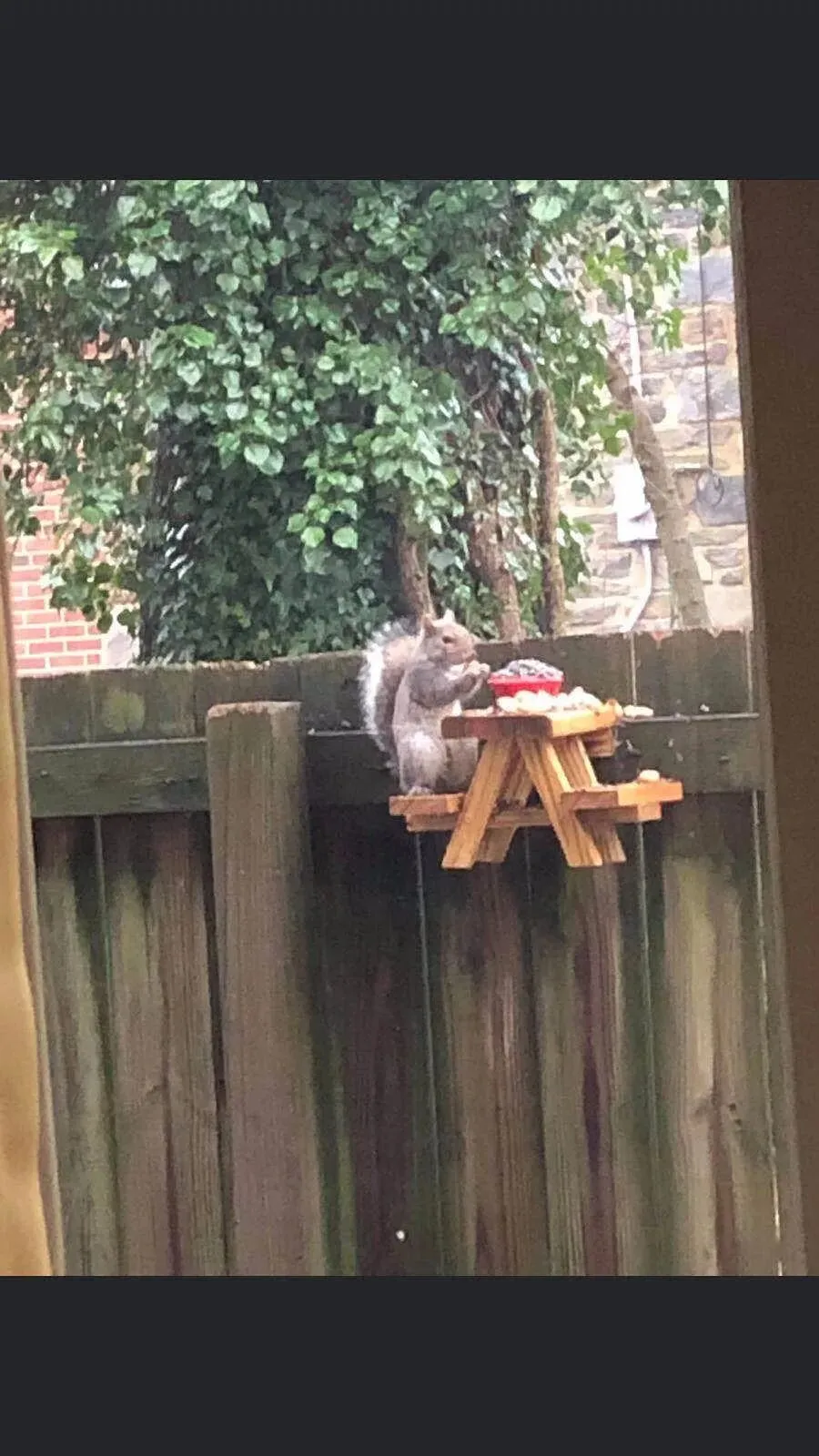 疫情期间米国的朋友们在干啥?朋友在休斯顿的家里,为小松鼠做的小饭桌,真是可爱到爆啦!
