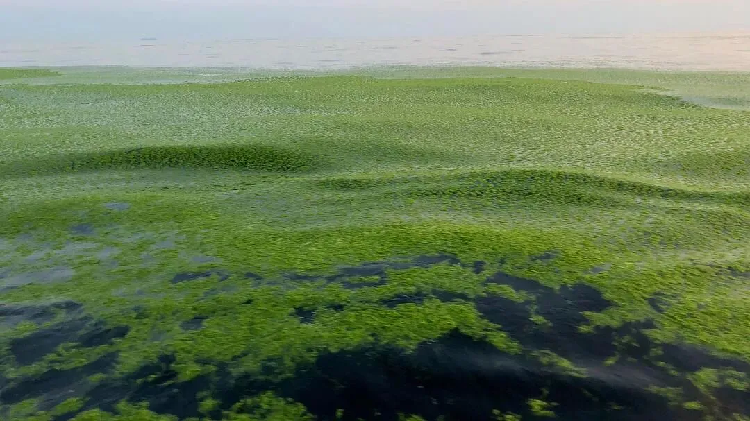 海面上的浒苔 就像不停浮动的草原 来自豆瓣话题#理科中的美学#