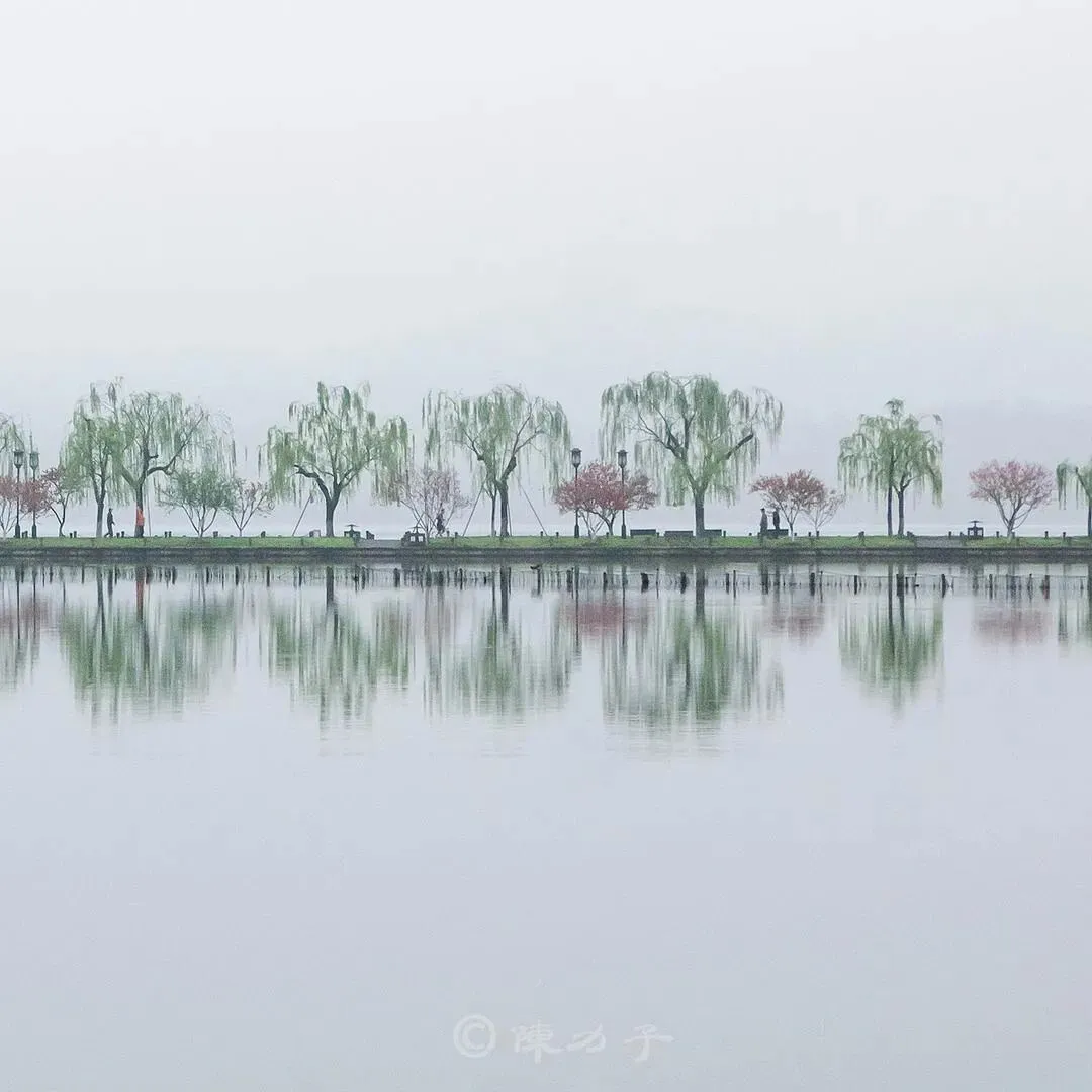 春日拂晓,晨光初启,沿北山路漫行,对面的白堤,烟柳笼纱,桃花绽放,湖光春色,如画卷呈于眼前,让人心醉。 来自豆瓣话题#你镜头下的杭州#