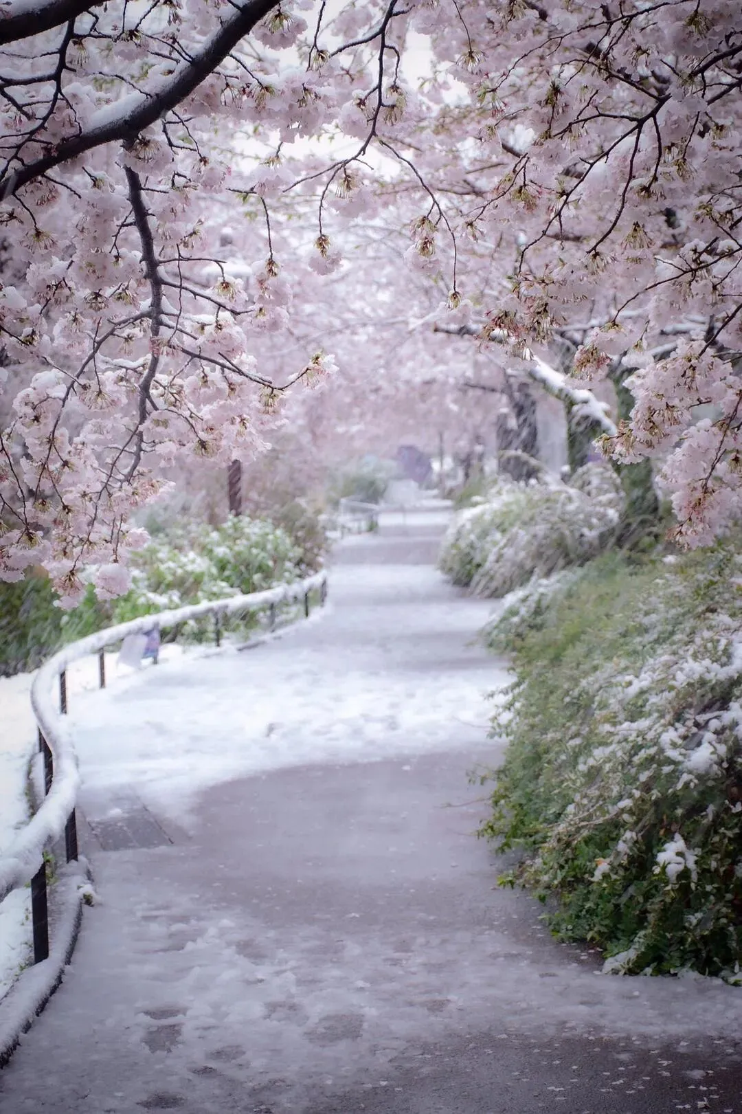 就在前几天,东京下雪的时候,我曾经想象过这样的场景:三月里,雪和樱花一同盛开,一起在空中飞舞。 没想到,今天的东京,居然真的出现了这样的景象。白的雪,粉的樱,一个在天上飘,一个在枝头绽放,迷迷蒙蒙的,把东京装扮成一个梦幻般的的世界。 据说,在樱花盛开的季节下雪,这是自1969年以来,第一次在东京出现。可惜由于交通不畅,这次无法亲自去东京目睹这样的盛况了。 跟朋友聊天时,我说出了感觉很可惜的意思,朋友沉吟了一下,回答说,大概这就是真正的人生吧,真正的人生,总是有缺憾的,总有些梦想,你无法去实现…… 可能是这样吧。 2020年,真是不同寻常的一年啊。