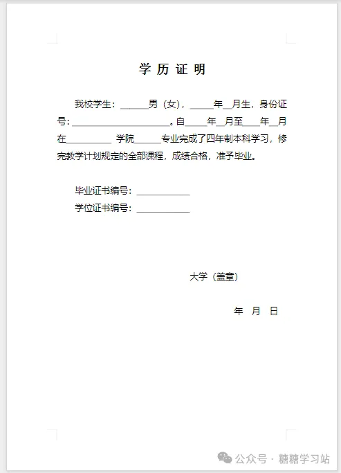 学历证明模版