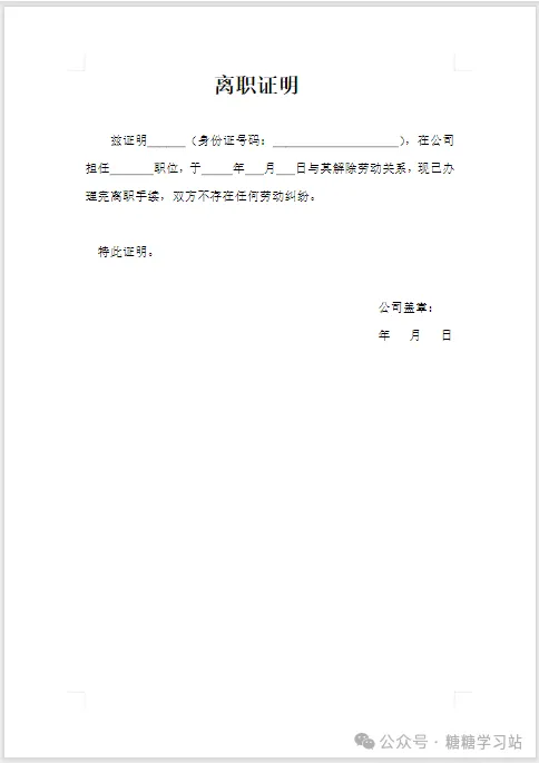 离职证明模版