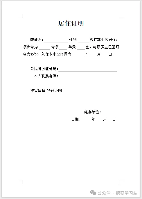 居住证明模版