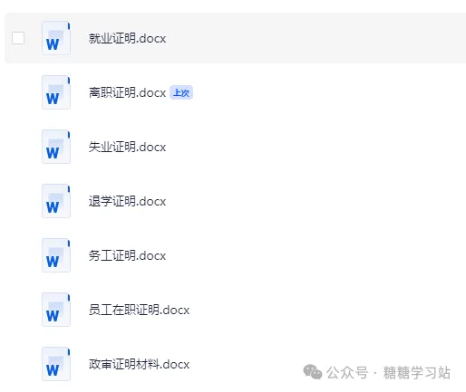 部分证明文件模版展示