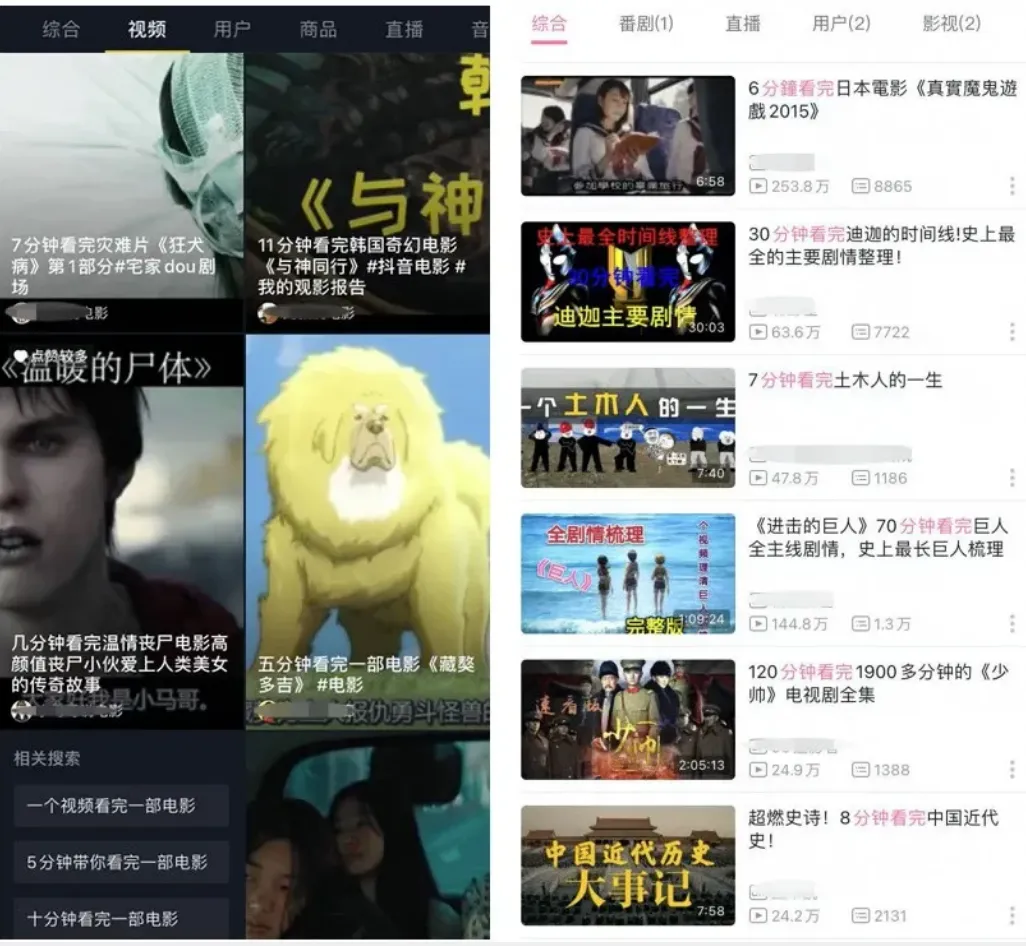 短视频的涌现加剧了受众对强刺激的需求,传统“爽文”“爽剧”的节奏在短视频的衬托下也显得不那么“爽”了,尤其是几分钟看完电影、短视频追剧的流行,让越来越多观众直接抛弃了影视剧,选择只在短视频平台看“高能”片段。