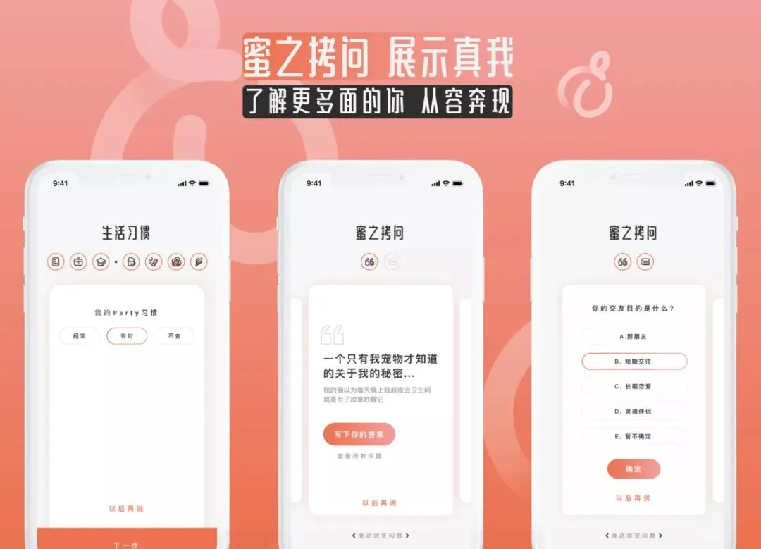 为更好的适配年轻人的交友需求,「来蜜」App设置了用户多维资料卡,并集成ins、微博等个人社交媒体,帮助用户更好的展示个人信息、表达态度。「来蜜」App资料设置引入“蜜之拷问”,内含92个特色问题,使男女性用户“提前了解,从容奔现”。