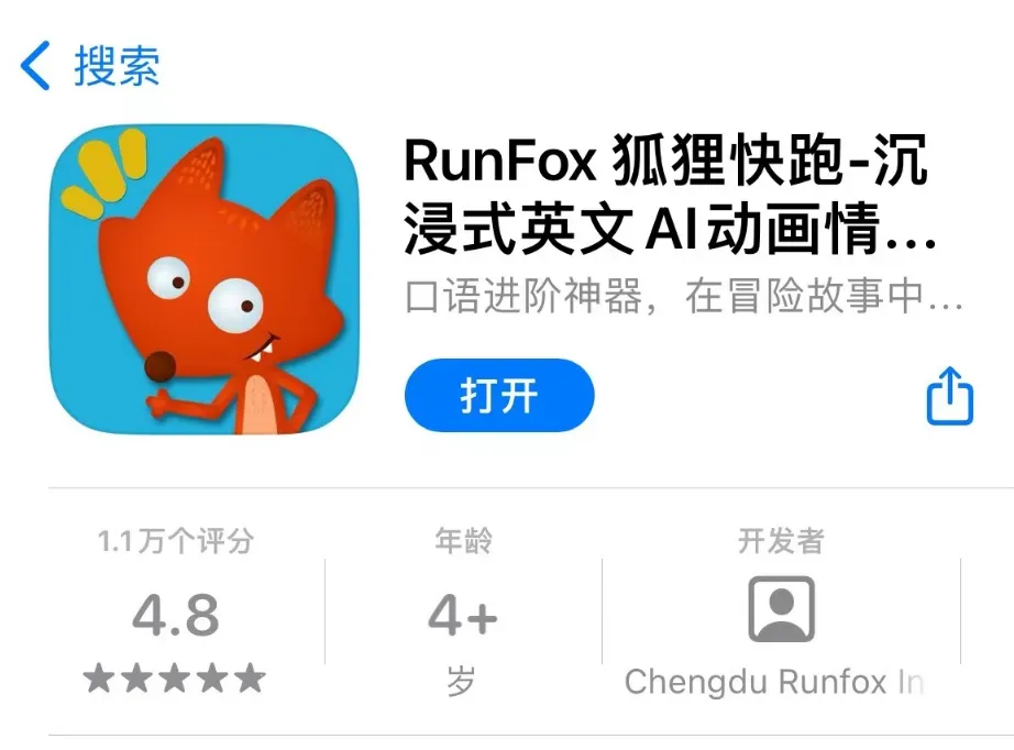「RunFox狐狸快跑」属于进阶级,适合6岁以上,必须有一定听说词汇基础的。