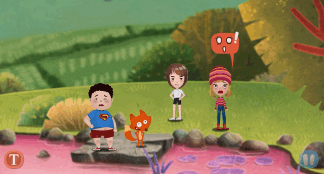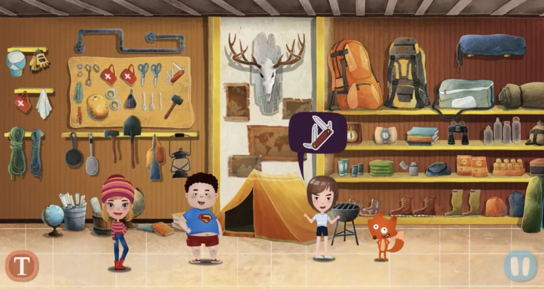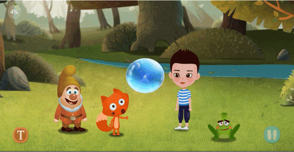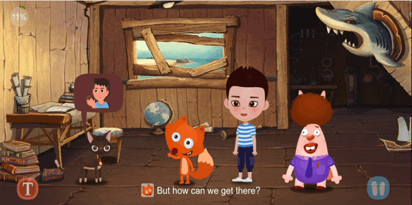 正式开始探险!孩子在动画情节中开启角色扮演,通过说台词推动故事发展。