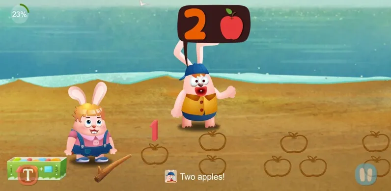它可以说完完全全体现了小狐狸英语系列的精髓,整个APP就是一部长达347集的交互剧情动画,娃跟着「狐狸快跑」学英语,完全不会有学习压力,整个就是追剧的感觉,超带感!
