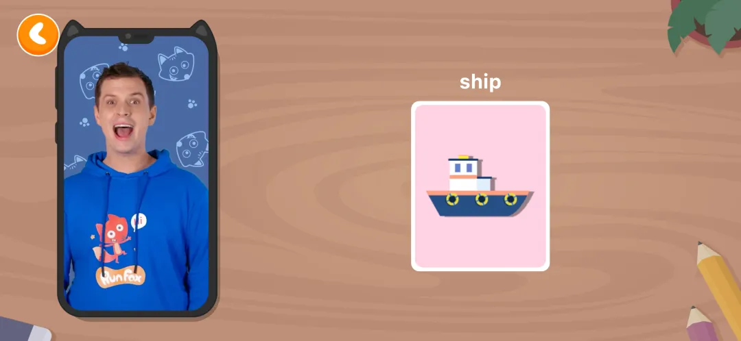剧情设计由浅入深,口语输出上也是一样,孩子会跟着小狐狸Ben,从最开始单词、短句,到后来可以直接整句输出。