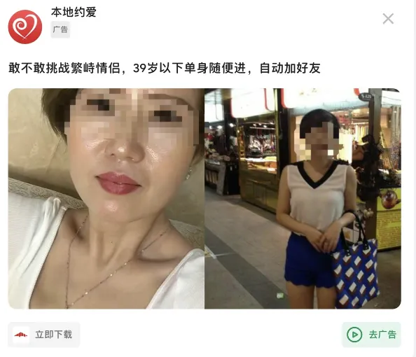 这些广告常年占据抖音和快手,一般主演就俩,性感丝袜少妇+外来务工厂弟、or时髦都市小妹+农民工大爷——总之必是忘年之交。