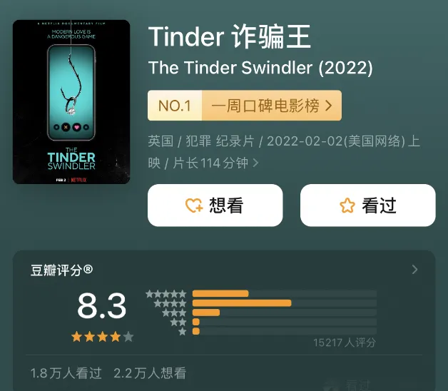 如果你还看不清现实,那院长建议你去看一下网飞最近很火的一部纪录片《Tinder诈骗王》。