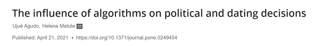 “也许我们会倾向于认为算法是客观、中立和高效的,毕竟它们总是以数字和规则的形式展示出来”,Agudo说,至于为什么人们会更喜欢算法推荐的对象,“这是一个不涉及感情的决定”。