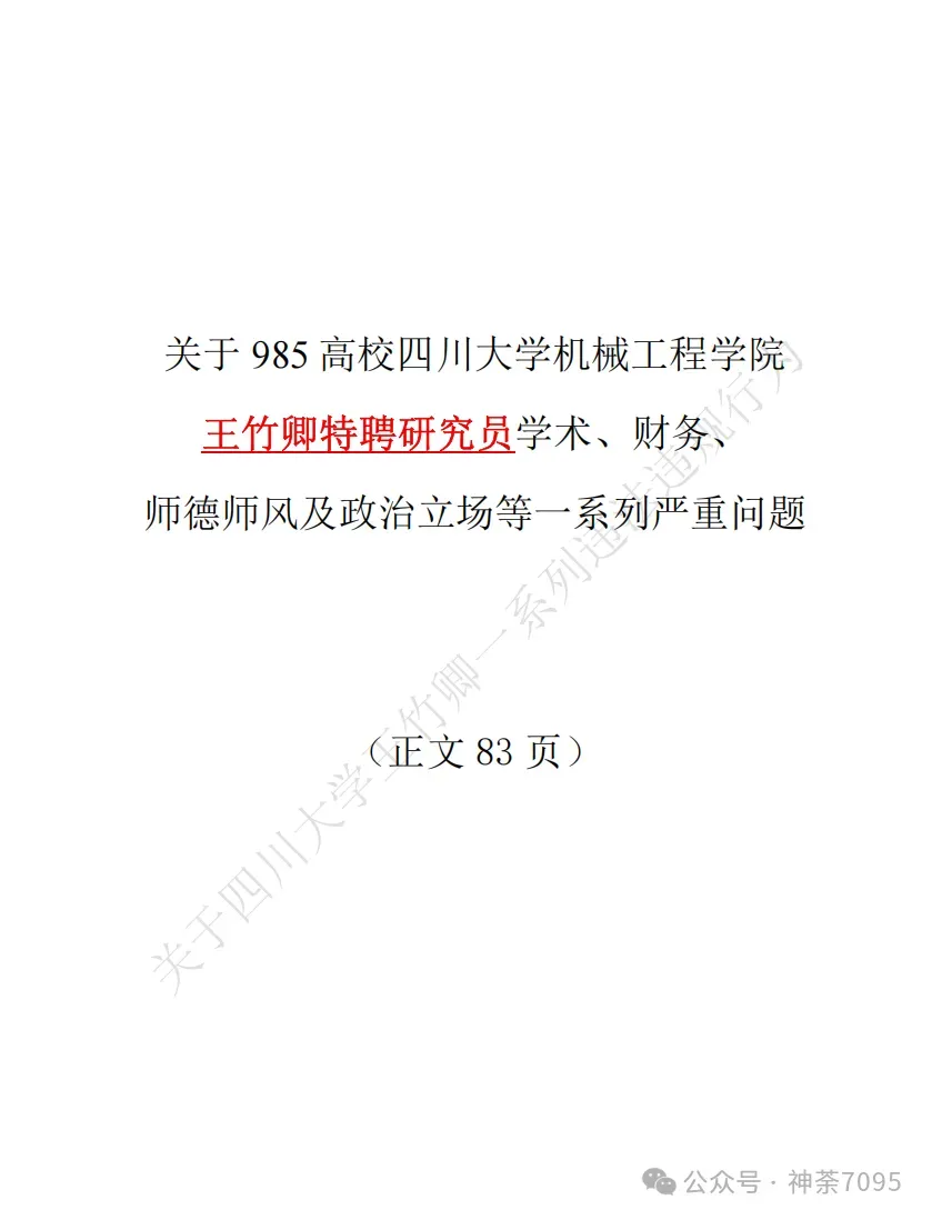热点!四川大学83页举报PDF!王竹卿83页举报信pdf完整版!王竹卿师风师德等严重问题(内含全版)稍等