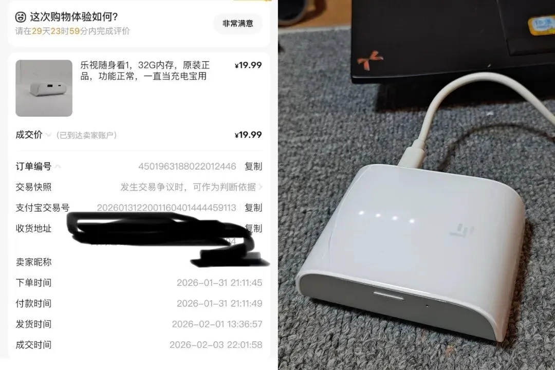 今天不聊新款数码,来搞一波电子考古——扒一扒当年乐视还在巅峰时,推出的一款堪称“脑洞大开”的特色产品:乐视随身看32GB版本。前段时间在咸鱼瞎逛,刷到它只要19块钱,果断拿下当收藏。