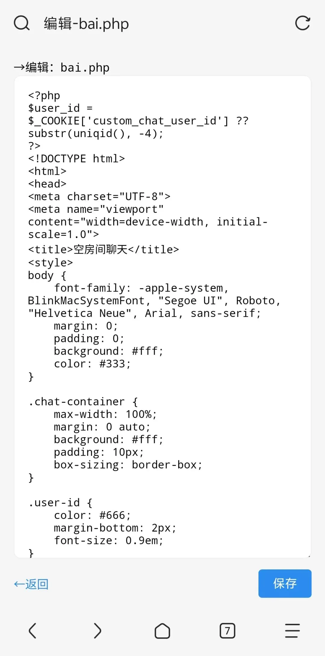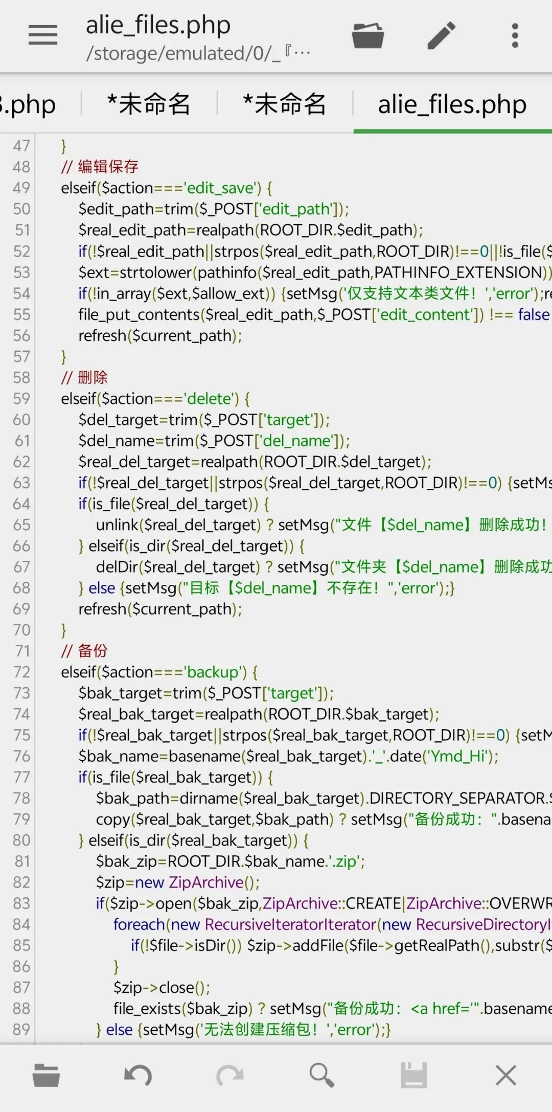 2. 文件编辑:支持编辑txt、php、html、css等指定文本类文件,在线修改并保存内容;