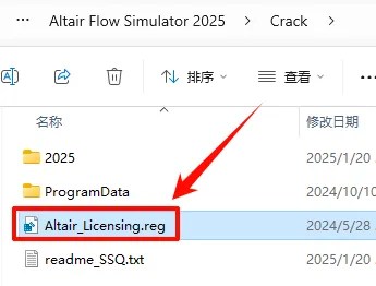 2.打开刚刚解压的文件夹,双击打开”Crack“文件夹,双击运行”Altair_Licensing.reg“注册表文件