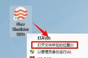 16.在桌面上选中”Flow Simulator 2025”软件图标,鼠标右键点击“打开文件所在位置”