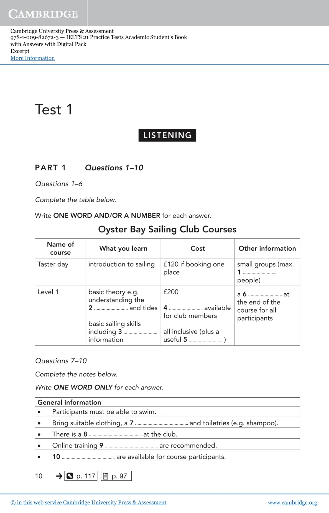 Part1:帆船俱乐部课程咨询,10道填空