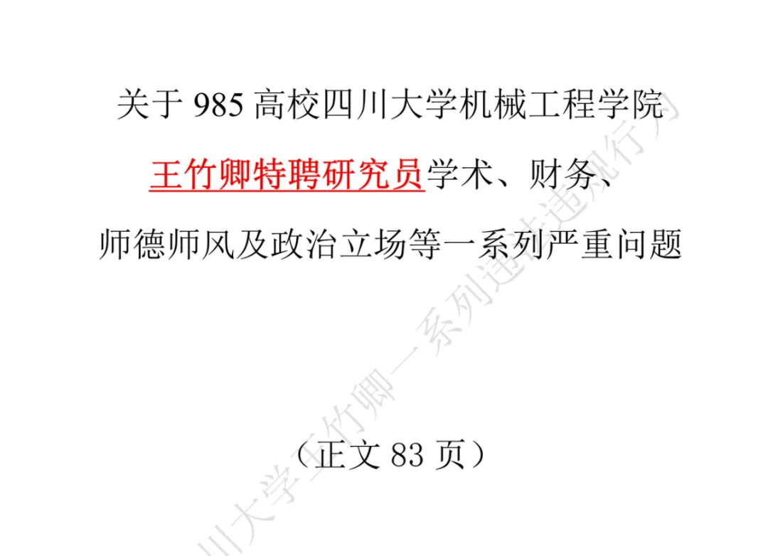 四川大学启动调查程序!研究生用83页PDF联合举报王竹卿…