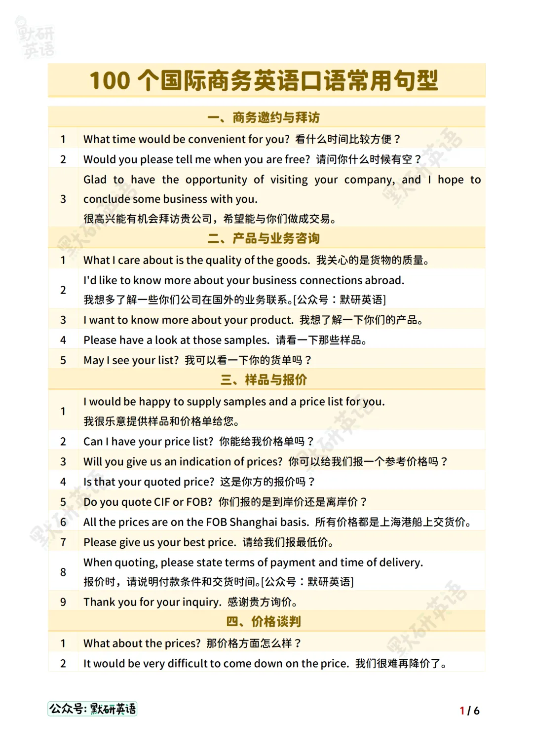 别慌!这份国际商务英语口语常用句型大全,直接帮你把难题全解决!