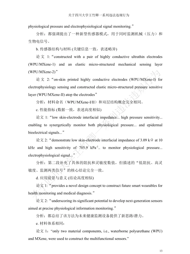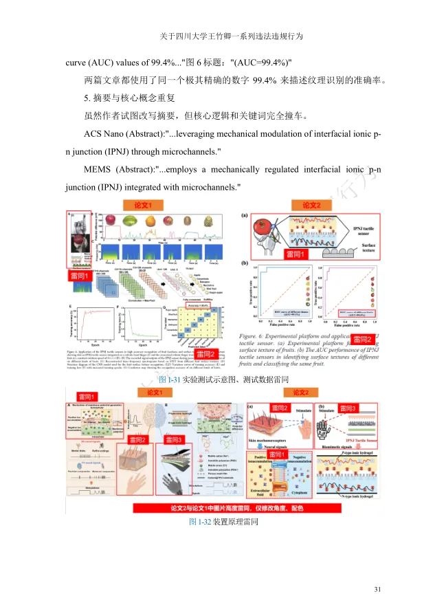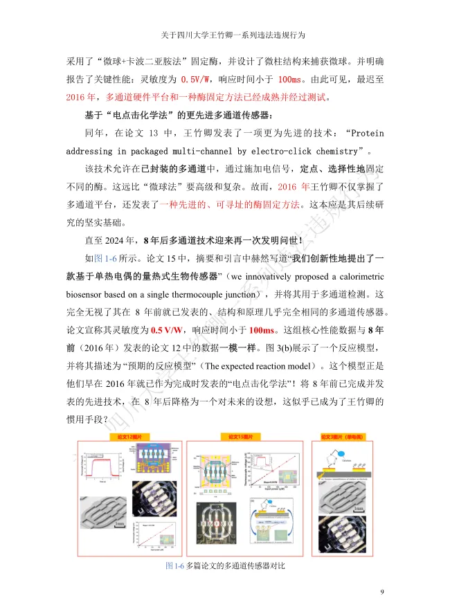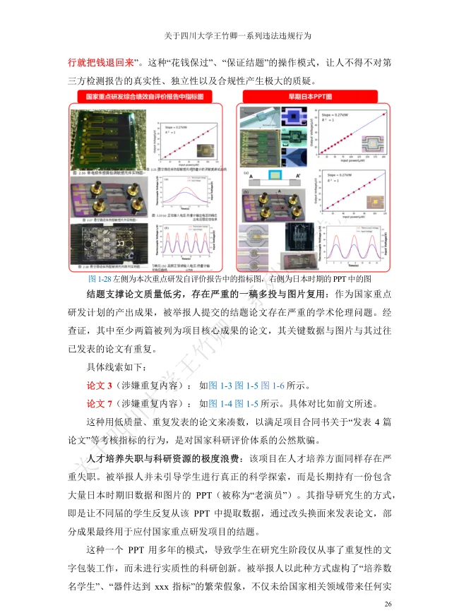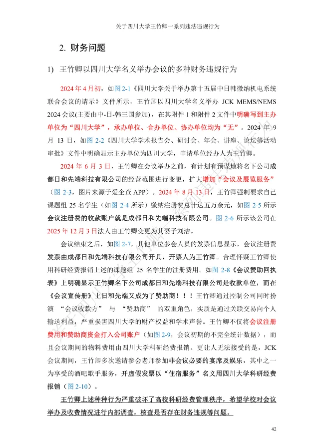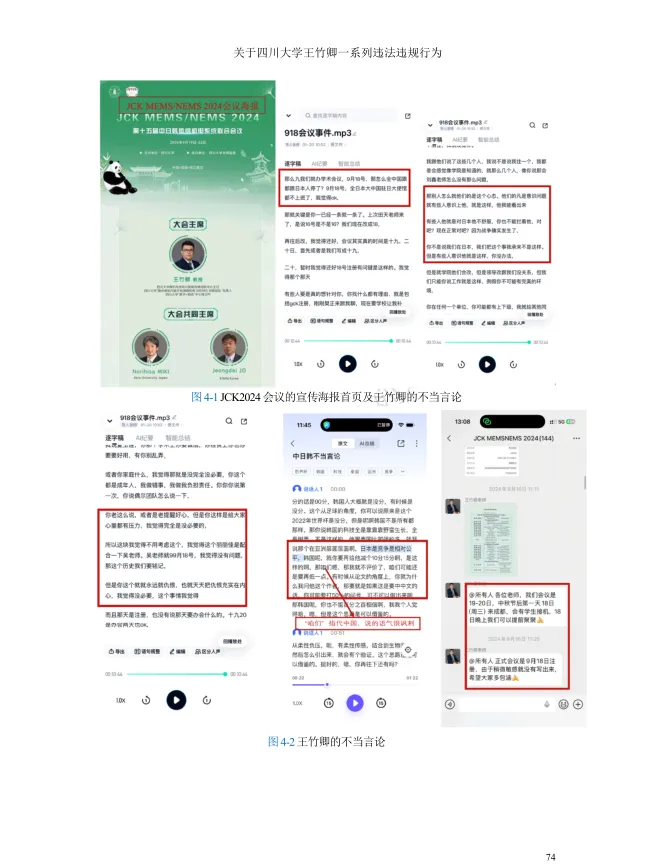 值得关注的是,被举报者王竹卿拥有光鲜的学术履历:本硕毕业于大连理工大学,2011年获日本山梨大学机能材料系统博士学位,2012-2020年在日本京都大学、东北大学等机构从事博士后研究与助理教授工作,归国后入职四川大学,头顶“四川省天府峨眉计划创新领军人才”“微机电系统与智能传感创新中心负责人”“四川大学‘医学+制造’平台独立PI教授”等光环,长期从事MEMS传感器及生物医学检测芯片研究,发表学术论文42篇,其中SCI论文35篇,主持多项国家级科研项目,曾是备受瞩目的海外引进学术人才。