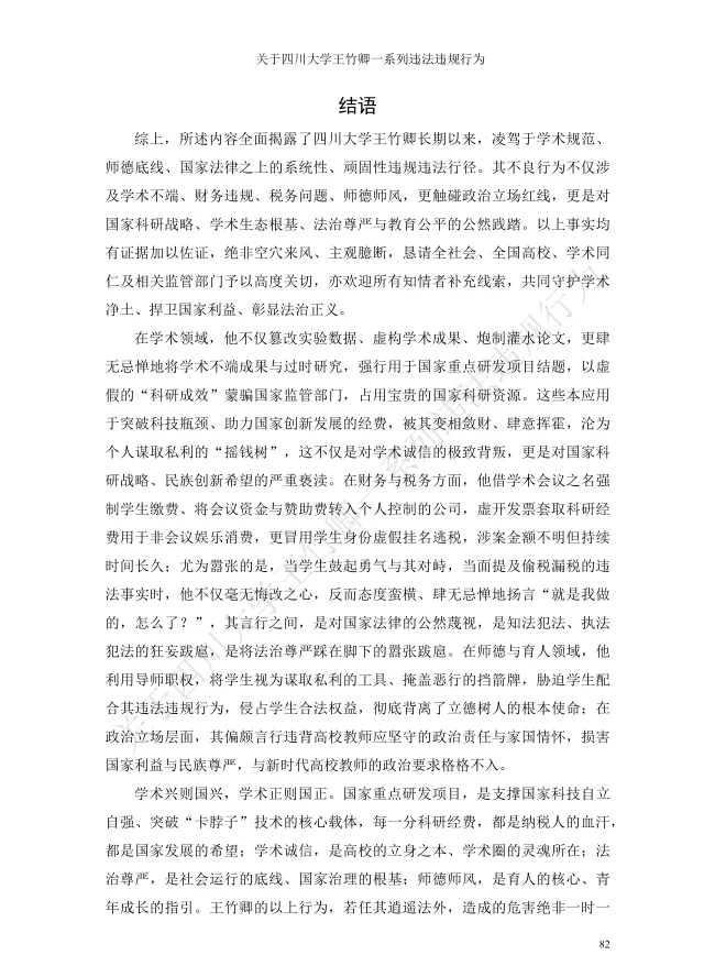 川大王竹卿被学生联合举报事件,是一场对高校学术诚信、师德师风和管理水平的考验。