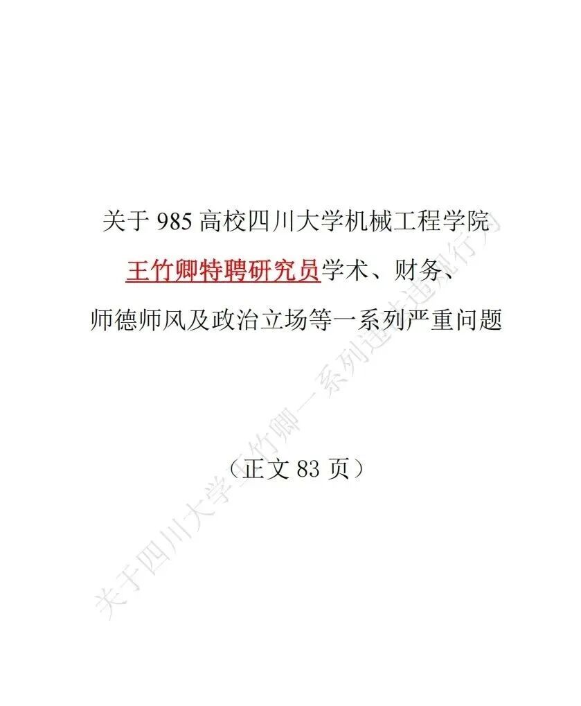本站文章均为手工撰写未经允许谢绝转载:夜雨聆风 » 四川大学83页举报PDF!王竹卿83页举报信pdf完整版!
