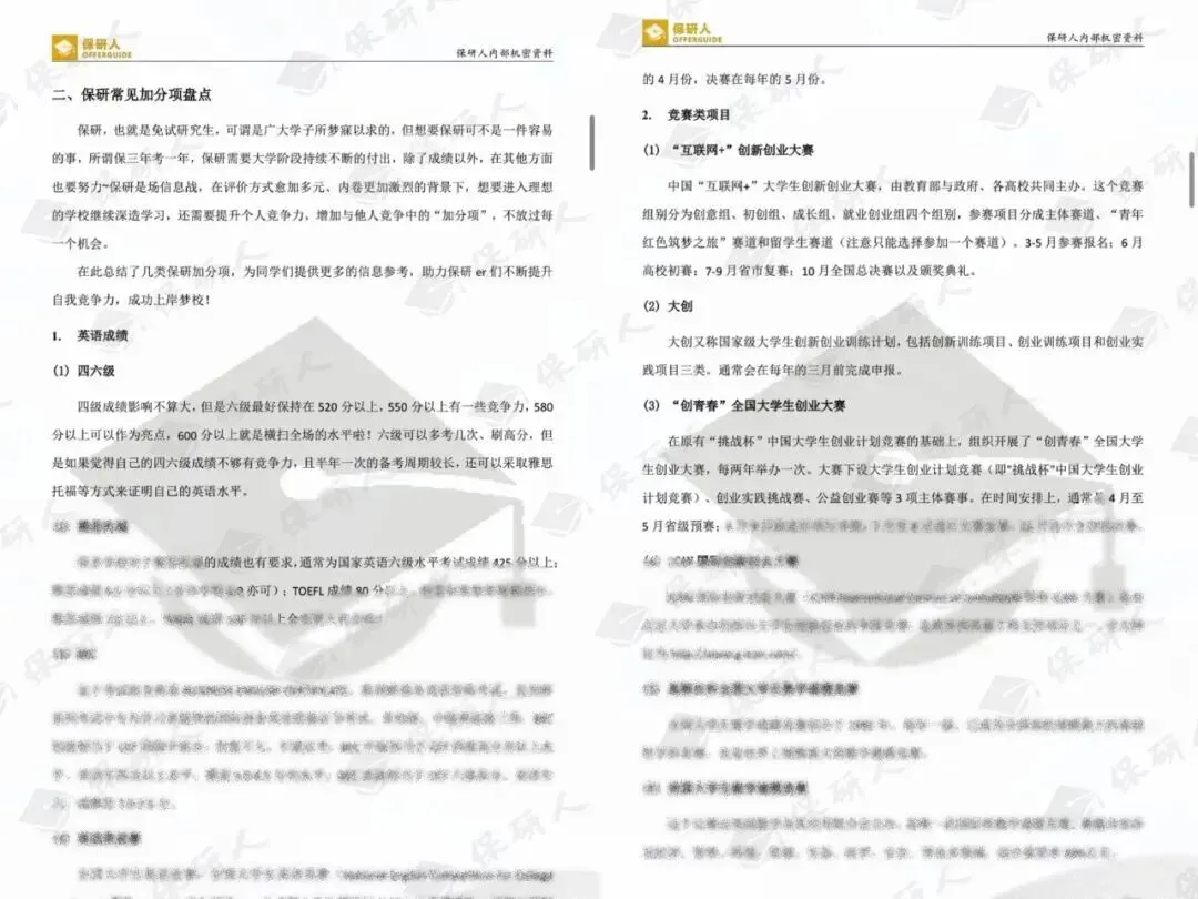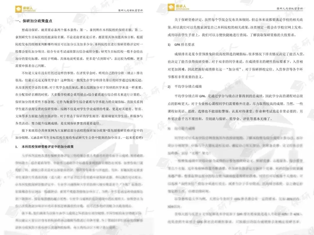《保研加分攻略手册》为大家整理了许多院校保研资格评定中的加分政策,结合具体例子说明哪些项目可能成为保研中的有效加分项。