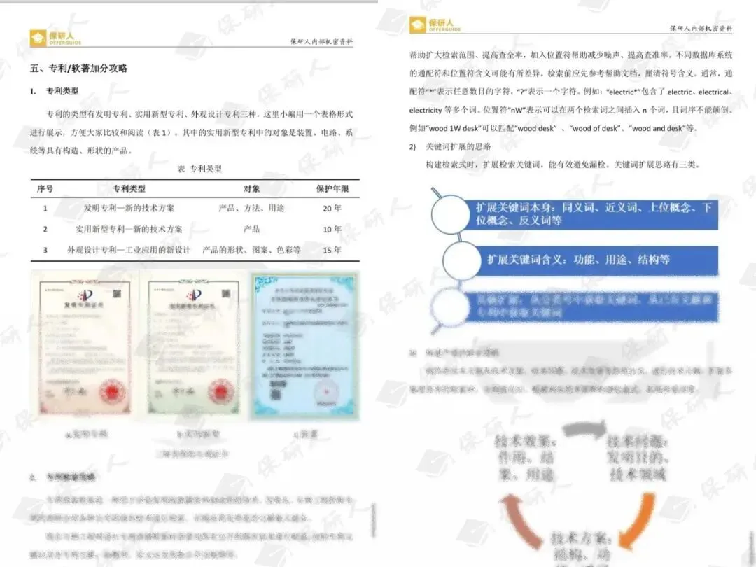 专利的类型有发明专利、实用新型专利、外观设计专利三种,对发明专利感兴趣、希望通过专利软著获得保研加分的同学可以仔细阅读这一部分,不仅能够了解到专利的类型划分、检索攻略和申请流程,还能结合实际案例学习专利的写作方法,分析如何挖掘专利的创新点。