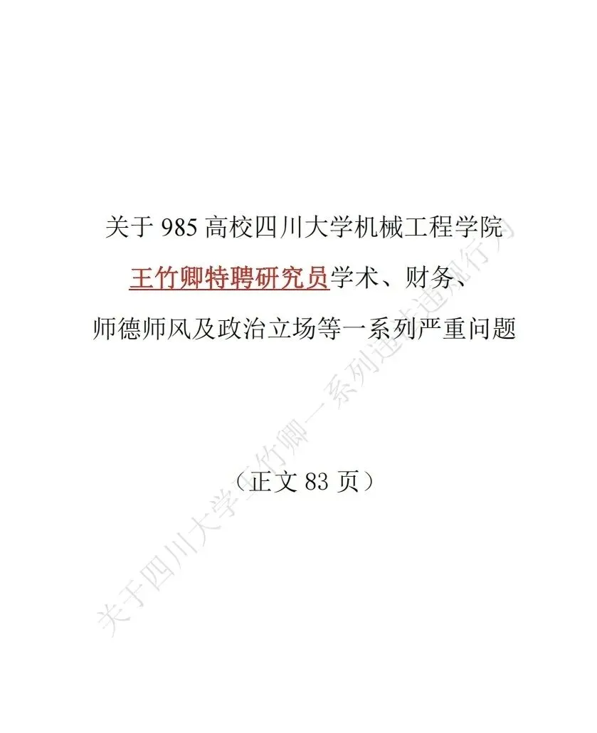 【吃瓜】四川大学83页举报PDF!王竹卿83页举报信pdf完整版!
