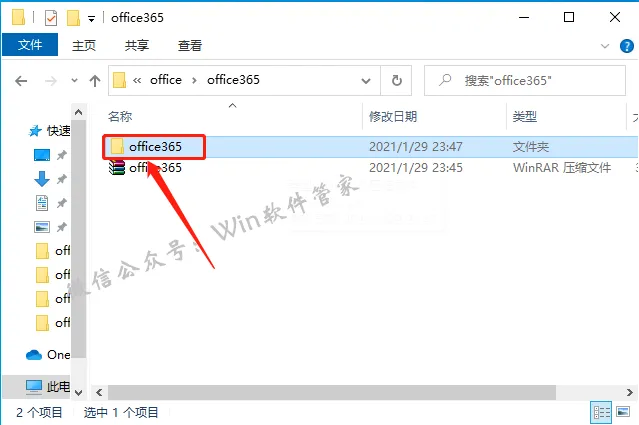 3.打开解压的【office365】文件夹。