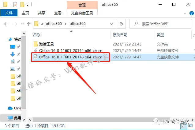 5.教程里用的是64位操作系统,所以双击打开【Office_16_0_11601_20178_x64_zh-cn】镜像。