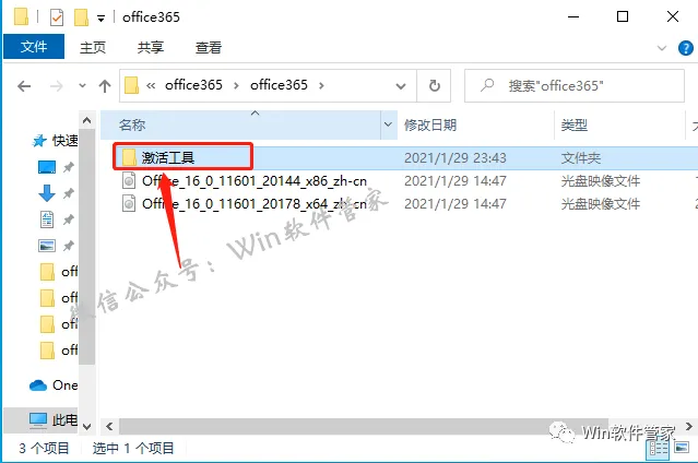 11.接下来我们开始office激活步骤,返回到开头解压的文件夹,打开【激活工具】文件夹。