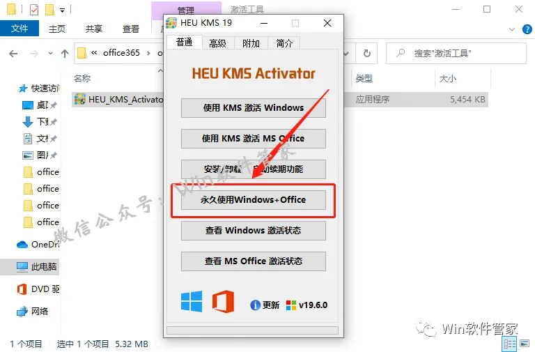 13.激活工具打开后,直接点击【永久使用windows+office】。