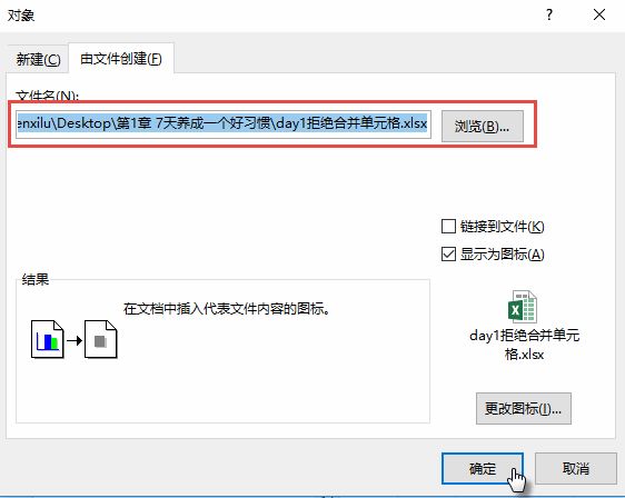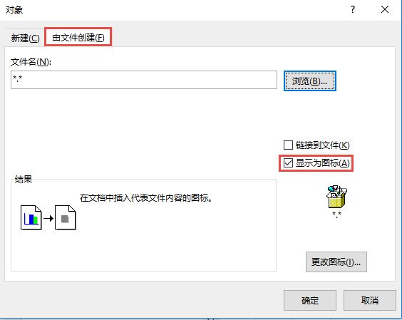 Step 02 单击由文件创建,勾选显示为图标。